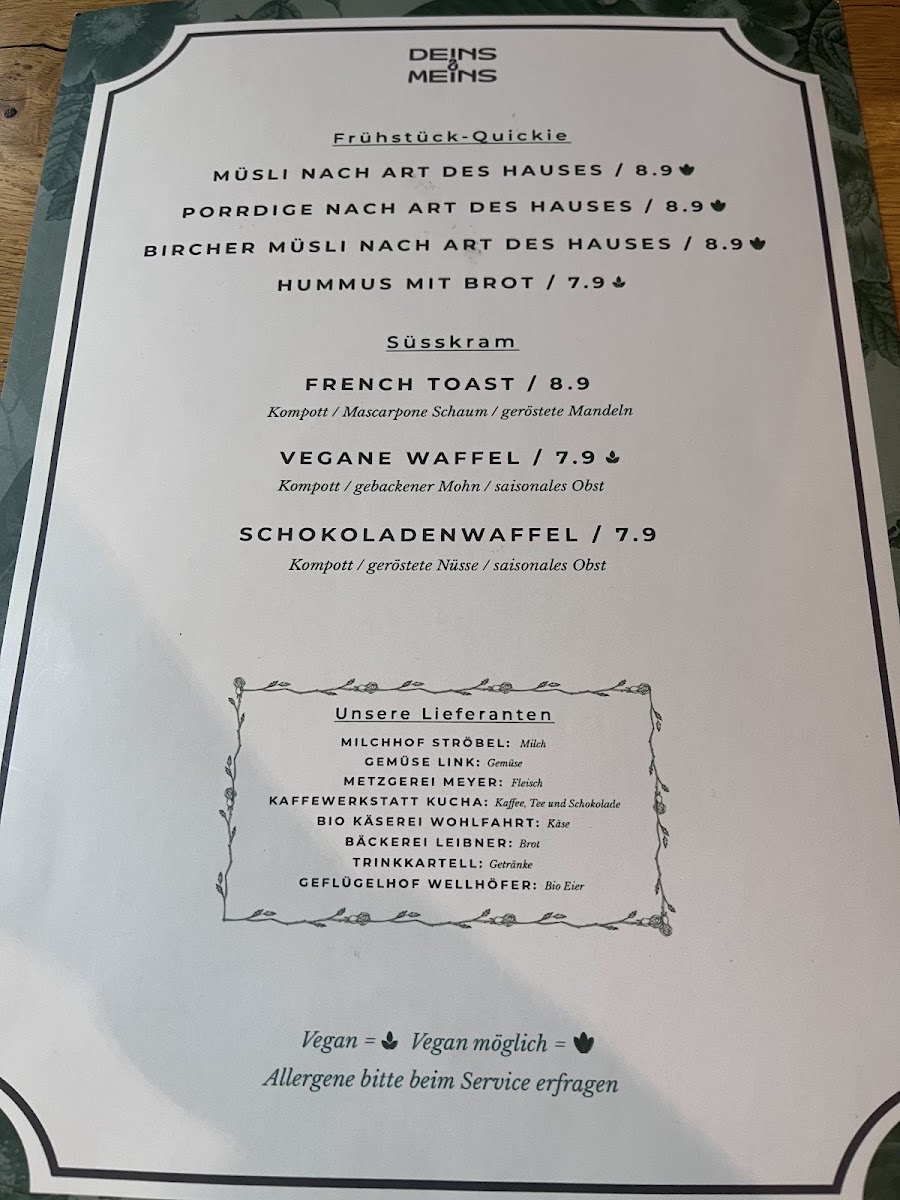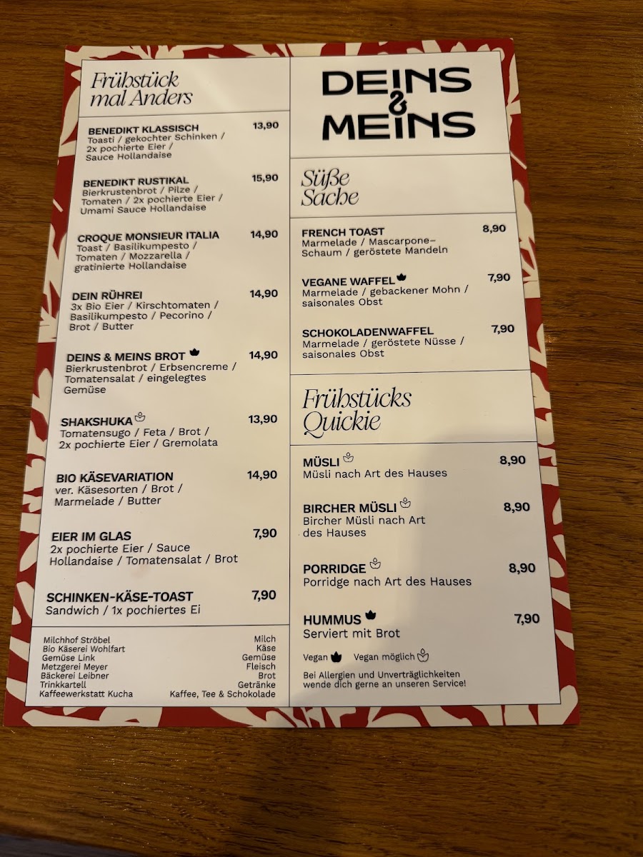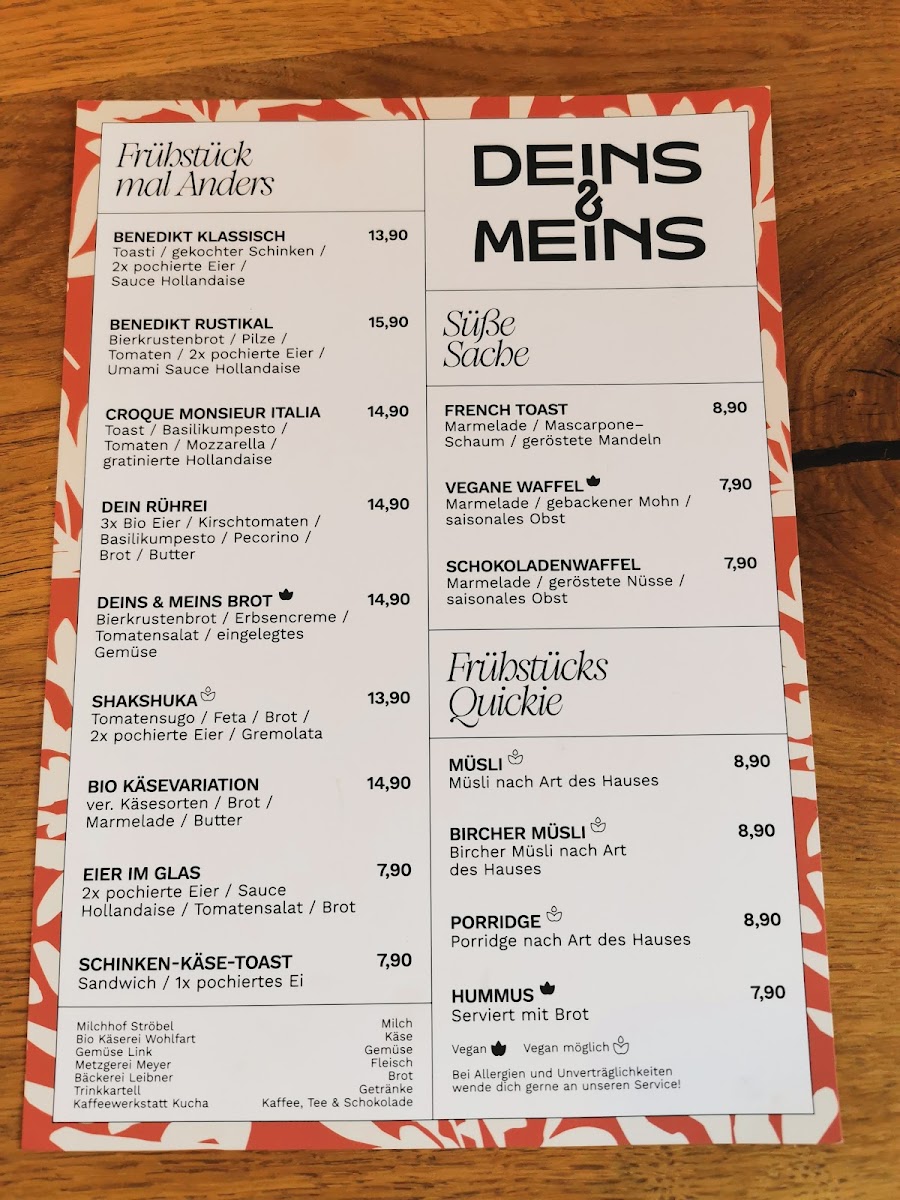 Whether you’re in the mood for a cozy breakfast, a rejuvenating coffee break, or an indulgent brunch with friends, Yours & Mine-Nurnberg is definitely one of the best spots in town. As you sip on freshly squeezed orange juice or dive into a plate of Benedict Rustikal, you’ll understand why so many have fallen in love with this charming cafe. Don't just take our word for it; come and experience the vibrant atmosphere, delicious food, and friendly service for yourself!