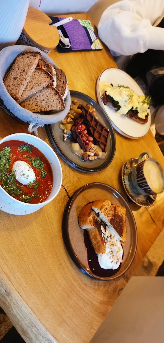 The menu is a beautiful fusion of flavors, with highlights such as the Eggs Benedict—perfectly poached eggs served on toasted English muffins that are rich and bursting with flavor. The Shakshuka, raved about by Karen Cardenas, features eggs nestled in a vibrant tomato sauce that’s as flavorful as it is beautifully served. And for those who appreciate a soothing cup of coffee, the cappuccino here is a must-try, celebrated for its rich and smooth profile.